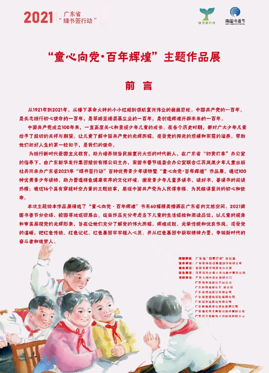 值得一提的是,本次主题绘本作品展精选的“童心向党·百年辉煌”书系60幅精美插画也将会在广东省内文旅空间、2021南国书香节分会场、校园等地进行巡展。