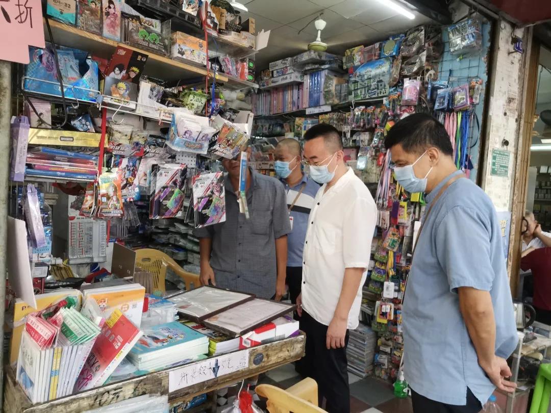 9月初,金平区“扫黄打非”工作领导小组办公室牵头区委宣传部(新闻出版局)、区委统战部(民宗局)、公安金平分局、区教育局、区市场监管局开展了中小学校园周边文化市场联合整治行动,赴粤东书店、良友书店、新博香书店、金龙小学周边文具店、悠游网咖、启明星网咖等出版物经营场所、互联网上网服务营业场所等11处,对相关场所的“扫黄打非”、疫情防控、安全生产、文明创建等工作情况进行专项检查。