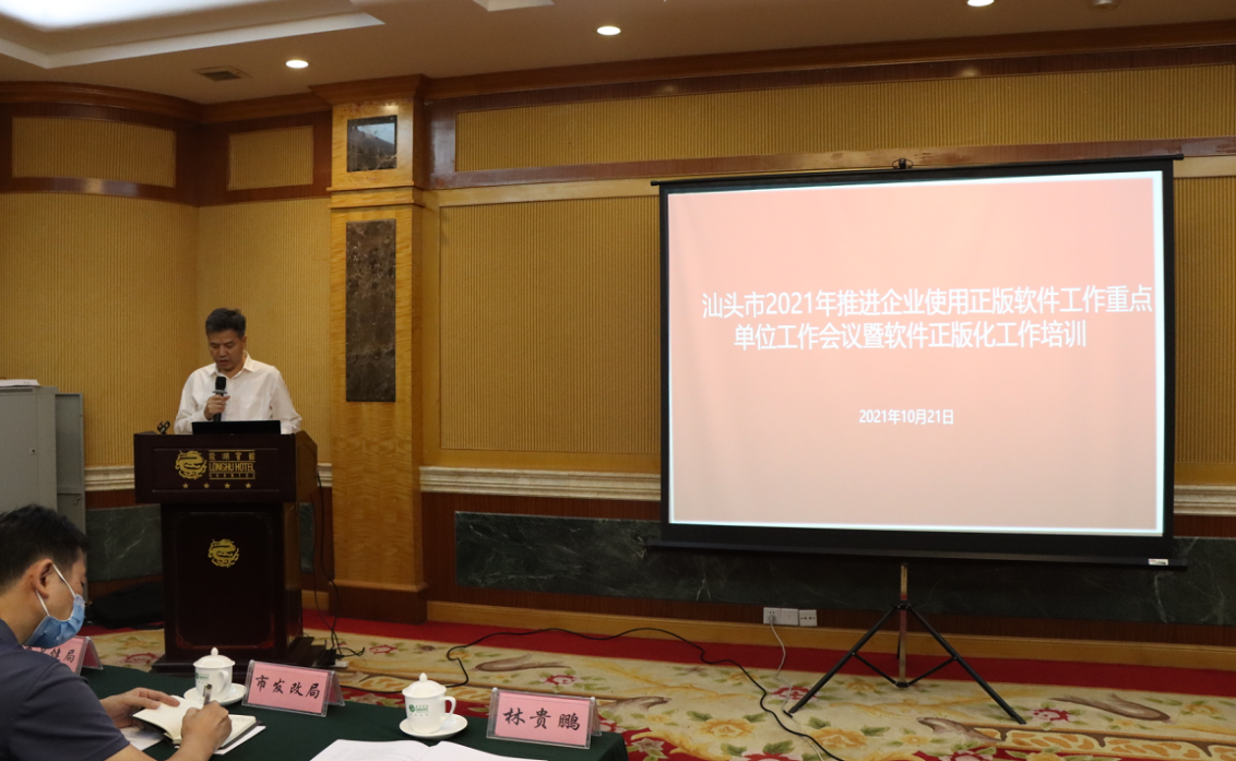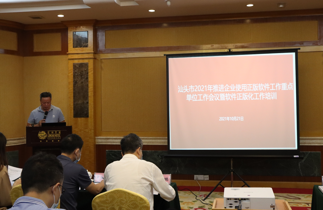 为扎实做好企业软件正版化工作,督促相关企业按时完成省推进企业使用正版软件工作任务,实现软件正版化工作规范化、制度化和常态化。10月21日上午,汕头市版权局在龙湖宾馆召开汕头市2021年推进企业使用正版软件工作重点单位工作会议暨软件正版化工作培训。市有关单位负责同志、各区县版权局有关负责同志以及被省列入2021年广东省推进企业使用软件正版工作重点推进单位负责人参加了此次工作会议。